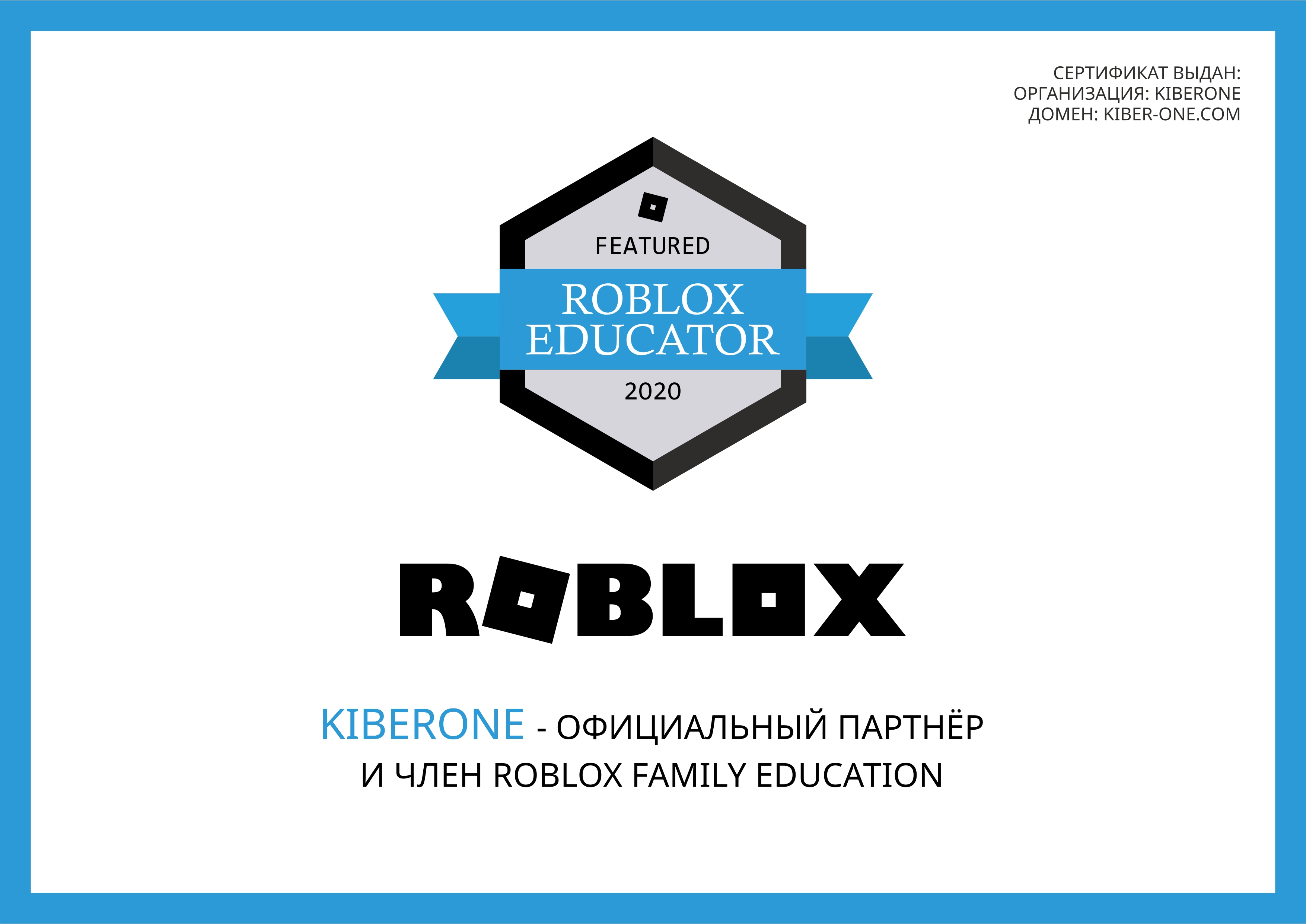 KIBERone-Roblox Family Education компаниясының ресми серіктесі және мүшесі